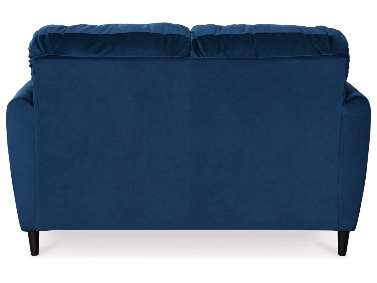 Material : A brilliant take on urban chic styling, the Enderlin loveseat in vibrant blue makes high design highly affordable. Distinctive elements include quilted channel stitching for clean-lined allure and a velvety soft fabric you'll love living with. Sculptural track arms up the wow factor. If you’re looking for big style on more modest scale, you’re sure to appreciate this loveseat’s space-conscious 59" wide profile.