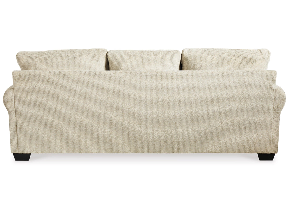 Material : The Monaghan sofa strikes a beautiful balance between classic and current. Its traditional elements include t-cushion seating and setback roll arms, angled for modern flair. Posh pillows in spa mist and jacquard paisley make a muted, mellow complement to the sofa’s casual textured chenille upholstery. And the choice of sandstone beige is a light and lovely style awakening.
