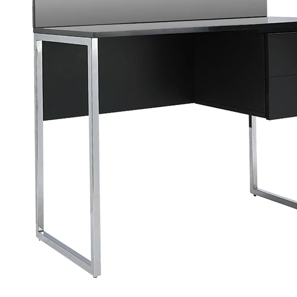 board top with high-gloss surface. - Door front made of dark gray melamine-coated particle board with high-gloss