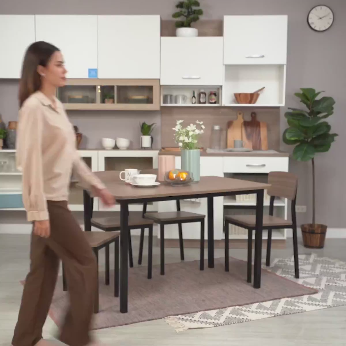 H-GUNNER/P DINING SET(1T+4C) NT/BK