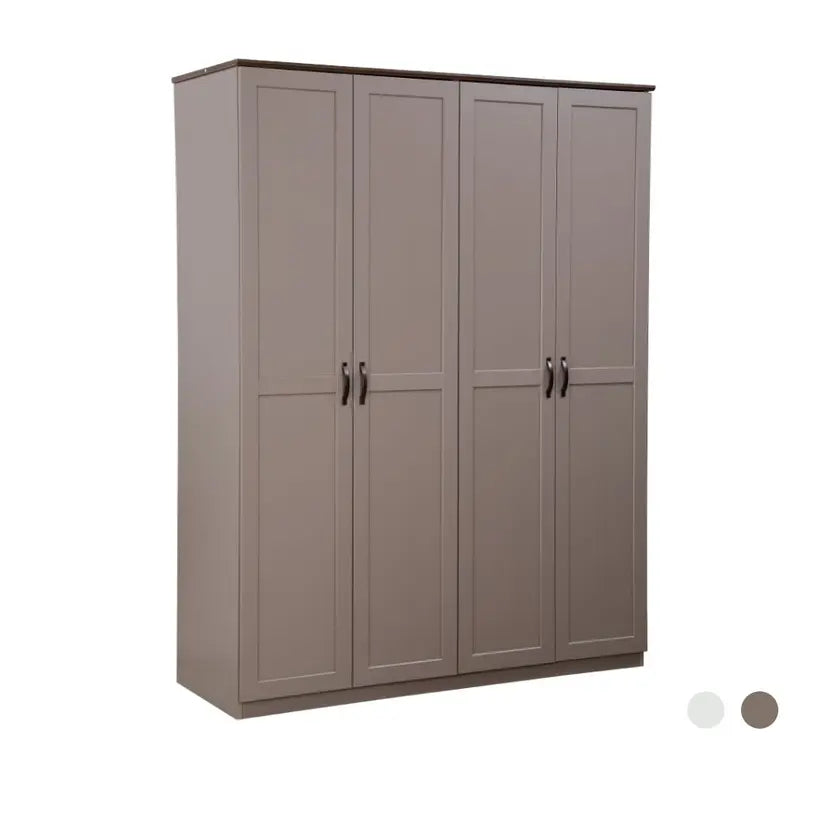 - ROME Wardrobe with 4 doors, this urban contemporary feel wardrobe provides all your garment storage needs and more. Large clothes hanging area, single drawer and luggage storage space will keep your living area free from mess.