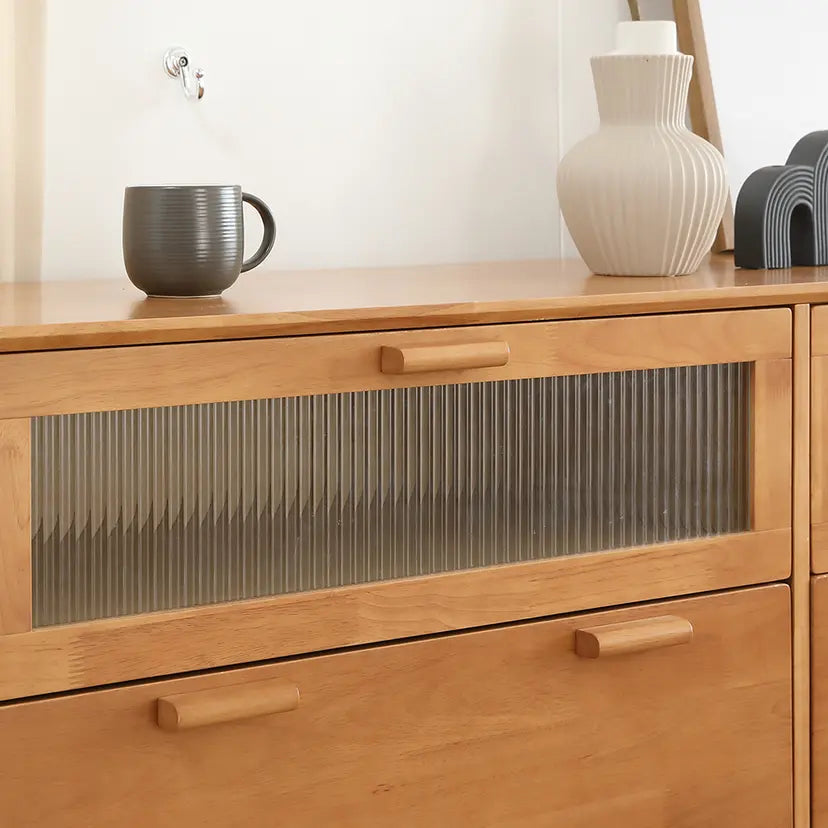 - Add features to the drawer doors with 5 mm. thick patterned glass.